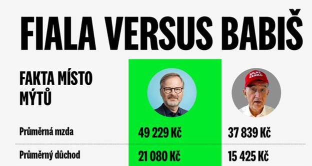 Propaganda to tak nedělá. Propaganda využívá zdání něčeho, čím ale ve skutečnosti není. Propagační tabulka Spolu porovnává výši důchodů za vlády ANO a za vlády Spolu, STAN a Pirátské strany. Zdánlivě porovnává koruny české z roku 2021 s korunami českými z roku 2025, i když bankovky a mince jsou stejné. To právě budí ono zdání. Háček je však v tom, že koruna z roku 2021 není ta samá jako koruna v roce 2025. Její reálná hodnota je o jednu třetinu nižší. Ten, kdo chodí pravidelně nakupovat, dobře ví, jak vše zdražilo.